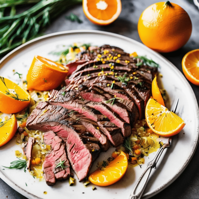 Garlic Fennel Flank Steak With Oranges is a vibrant and flavorful dish that combines the bold flavors of garlic and fennel with the refreshing sweetness of oranges. This unique twist on a classic flank steak offers a delightful contrast between the savory, herbaceous rub and the juicy citrus notes. It’s an ideal recipe for grilling or pan-searing, perfect for an elevated weeknight dinner or special gathering. The oranges not only add brightness but also complement the rich flavor of the steak.