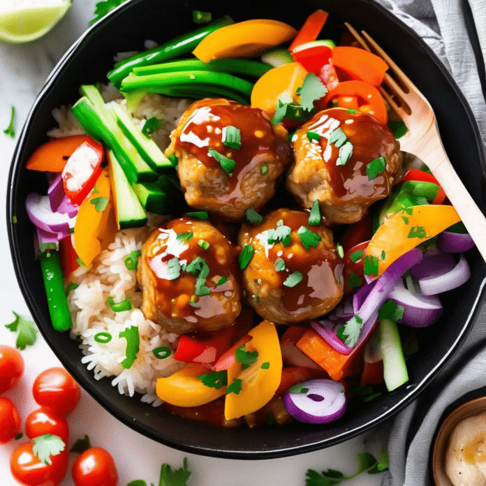 Garlic Ginger Chicken Meatball Bowls are a fresh and flavorful meal that’s both satisfying and wholesome. These tender chicken meatballs are infused with the warm, aromatic flavors of garlic and ginger, then served over a bed of rice or grains, and topped with crunchy vegetables and a tangy sauce. The combination of savory meatballs, vibrant veggies, and a rich sauce creates a balanced, nutritious bowl that’s perfect for weeknight dinners or meal prep. Each bite offers a delicious harmony of textures and flavors that are sure to make this dish a new favorite.