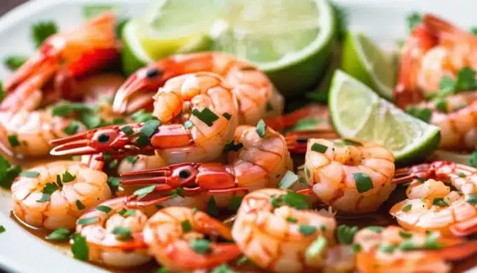 - Serve: Remove the shrimp from the heat and transfer them to a serving dish. Garnish with chopped fresh cilantro and serve with lime wedges on the side.
