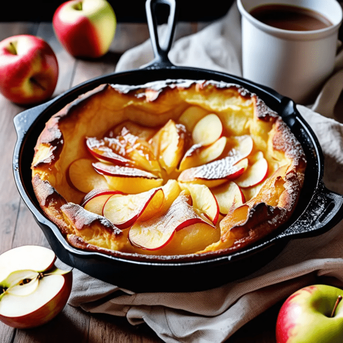 German Apple Pancake, also known as a Dutch baby, is a puffed, oven-baked pancake that’s both light and fluffy, yet rich with the comforting flavors of caramelized apples and cinnamon. The batter, similar to a popover, rises dramatically in the oven, creating a golden, crispy exterior with a soft, custard-like center. The sweet-tart apples and buttery cinnamon coating elevate this dish into a special breakfast or brunch treat. Simple to prepare and impressive to serve, this German apple pancake is a delightful way to start the day.