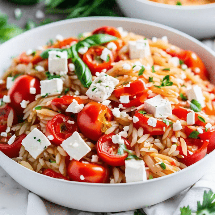 Greek Roasted Red Pepper Tomato Feta Orzo is a vibrant and flavorful Mediterranean-inspired dish that combines tender orzo with sweet roasted red peppers, juicy tomatoes, and tangy feta cheese. This one-pot meal is light yet satisfying, making it perfect for a quick weeknight dinner or a delicious side dish. The roasted red peppers and tomatoes infuse the orzo with rich, sweet flavors, while fresh herbs and crumbled feta add a salty, creamy finish. Whether served on its own or alongside grilled chicken or fish, this dish brings the fresh, bold tastes of Greece to your table.