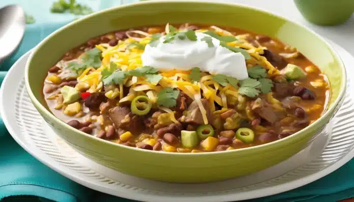 Enjoy the warm and tangy flavors of this Green Enchilada Pork Chili!