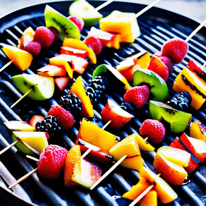 Place the fruit kabobs on the preheated grill and cook for 2-3 minutes per side, turning occasionally, until the fruit is slightly softened and has grill marks. - Optional Topping: