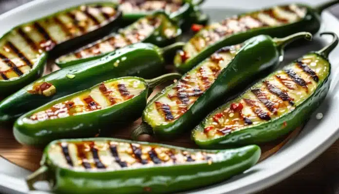 - For plain grilled jalapeños: Brush the halved and seeded jalapeños with olive oil and season with salt and pepper.