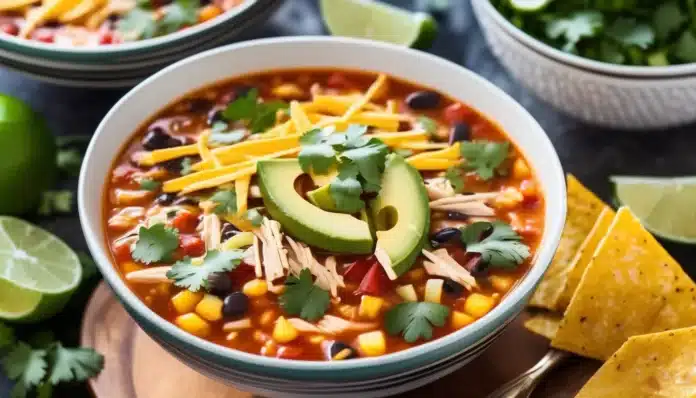 - Serve: Ladle the soup into bowls and top with crispy tortilla strips. Add your favorite toppings like sliced avocado, fresh cilantro, radishes, diced red onion, and a squeeze of lime. If desired, garnish with shredded cheese and a dollop of Greek yogurt or sour cream.