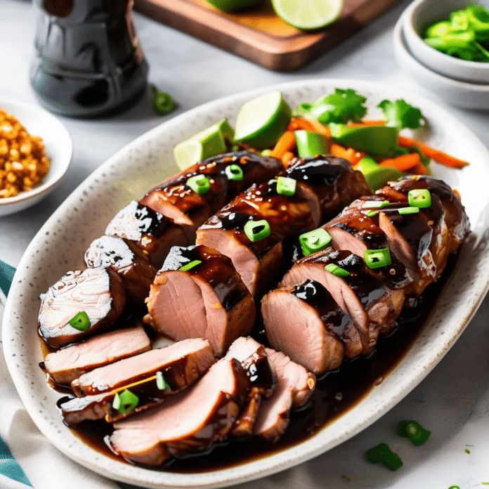 Hoisin Pork Tenderloin is a flavorful, tender dish that brings together the sweet and savory notes of hoisin sauce with juicy, marinated pork. This easy-to-make recipe features a quick marinade of hoisin, soy sauce, garlic, and ginger, which infuses the pork with rich, bold flavors. As it roasts, the tenderloin develops a beautiful caramelized glaze, making it perfect for a weeknight dinner or a special occasion. Served alongside rice or stir-fried vegetables, this dish offers a delightful blend of Asian-inspired flavors that will impress your family or guests.