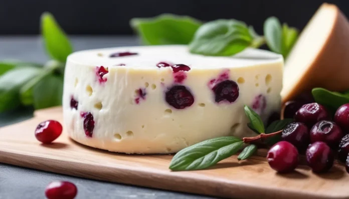 Homemade Vegan Cheese with Cranberries is a delightful and festive addition to any cheese board or holiday spread. This dairy-free cheese offers a creamy, tangy flavor with a touch of sweetness from the dried cranberries, making it a perfect alternative for those following a vegan lifestyle or anyone looking to try something new. Made from a blend of soaked cashews, nutritional yeast, and a few simple ingredients, this vegan cheese has a smooth, spreadable texture that’s ideal for pairing with crackers, bread, or fresh fruit. The cranberries add a pop of color and a burst of flavor, making this cheese as visually appealing as it is delicious. Whether you’re serving it at a party or enjoying it as a snack, this Homemade Vegan Cheese with Cranberries is sure to impress.