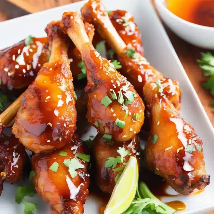 - Garnish and Serve: Once done, remove the drumsticks from the oven and let them rest for a few minutes. Garnish with sesame seeds and chopped parsley or green onions. Serve hot.