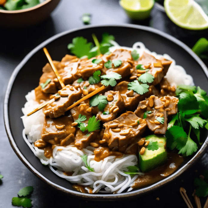 Instant Pot Pork Satay with Rice Noodles is a quick and flavorful dish that brings the exotic taste of Southeast Asia right to your table. This recipe features tender pork, marinated in a rich blend of peanut butter, soy sauce, and aromatic spices, cooked to perfection in the Instant Pot for a dish that’s bursting with flavor. Served over soft rice noodles and topped with fresh herbs and crunchy peanuts, this meal is both satisfying and easy to prepare. Perfect for weeknight dinners or when you crave something different, this dish is sure to become a favorite with its combination of savory, sweet, and tangy flavors.