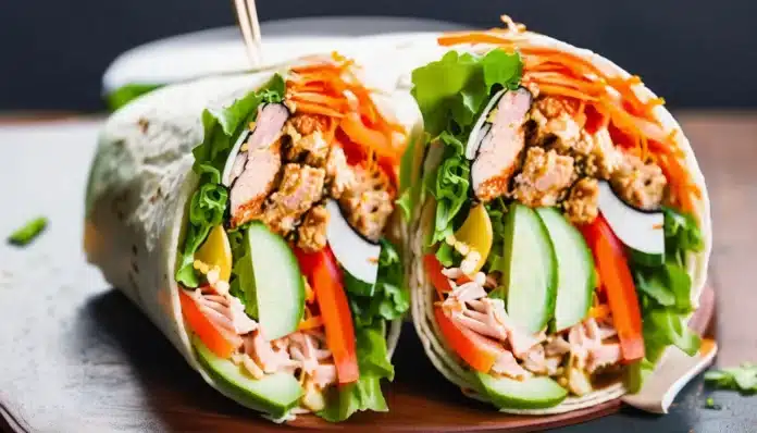 The Kimchi Tuna Salad Wrap is a vibrant fusion of flavors that combines the rich, savory taste of tuna with the bold, tangy kick of kimchi. This wrap is perfect for those who love a bit of spice and are looking for a healthy yet satisfying meal. The combination of crisp vegetables, creamy avocado, and the umami-packed tuna creates a delightful balance of textures and flavors. Wrapped in a soft tortilla, this dish is not only quick and easy to prepare but also versatile enough for a quick lunch or a light dinner.
