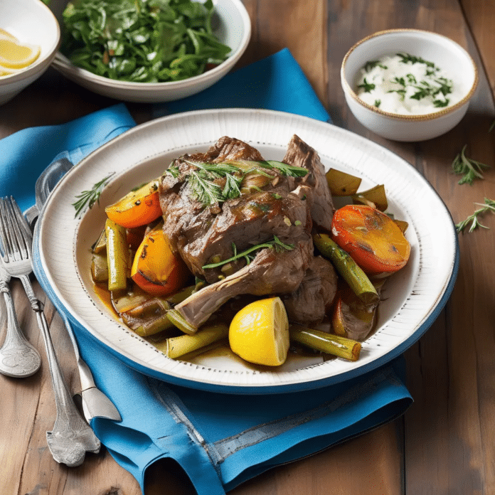 Lamb Kleftiko is a traditional Greek dish that celebrates the rich flavors of slow-cooked lamb, infused with aromatic herbs and vegetables. This hearty meal is known for its tender, melt-in-your-mouth meat, which is typically cooked in parchment paper or foil, allowing the flavors to meld beautifully. Marinated with garlic, lemon, and oregano, the lamb is paired with potatoes, carrots, and sometimes feta cheese, making it a complete and satisfying dish. Perfect for special occasions or a comforting family dinner, Lamb Kleftiko embodies the essence of Greek cuisine with its rustic charm and depth of flavor.