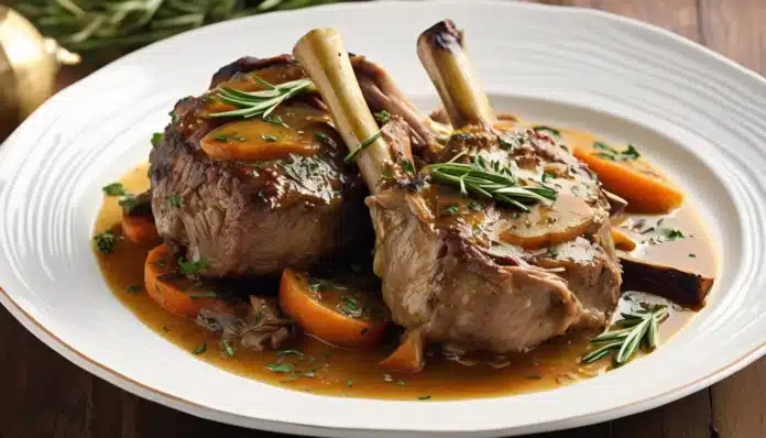 Enjoy your Lamb Shank Braised in White Wine with Rosemary as the centerpiece of a cozy and delicious meal!