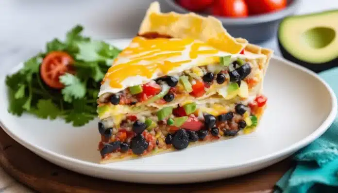 - Assemble the Pie: In a greased 9-inch pie dish, place one tortilla at the bottom. Spread a layer of the meat and bean mixture over the tortilla, then sprinkle with some shredded cheese. Repeat the layers (tortilla, meat mixture, cheese) until all ingredients are used, finishing with a tortilla on top.