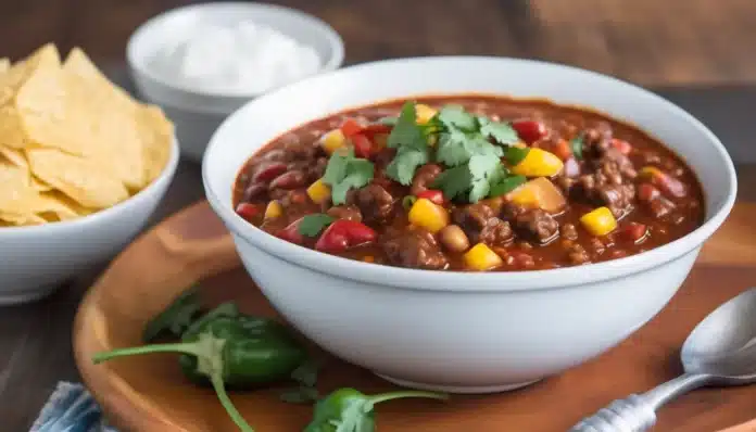 - Serve: Taste and adjust the seasoning as needed. Ladle the chili into bowls and garnish with shredded cheese, sour cream, and chopped green onions if desired. Serve hot with cornbread, tortilla chips, or crusty bread on the side.