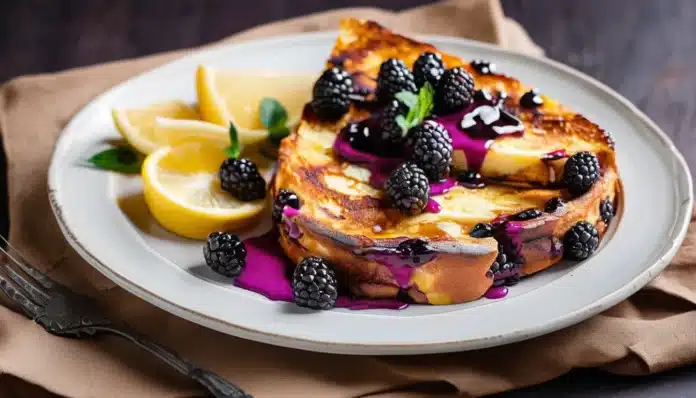 Lemon Blackberry Tortilla French Toast is a creative and refreshing twist on the classic French toast, using tortillas instead of bread for a light, crispy texture. This dish combines the bright zest of lemon with the sweet and tart flavors of fresh blackberries, wrapped in a golden tortilla. Perfect for breakfast or brunch, it’s a fun and easy way to enjoy French toast with a fresh burst of flavor. Serve it with a drizzle of maple syrup or a dusting of powdered sugar for an extra touch of sweetness.
