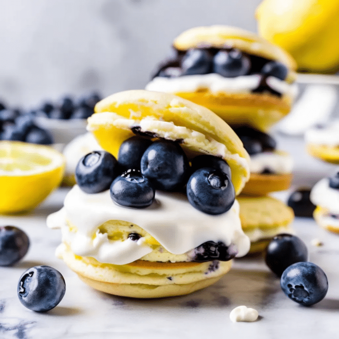 Enjoy the fresh, zesty flavors of lemon and blueberry in these delightful whoopie pies, perfect for a bright and refreshing dessert!
