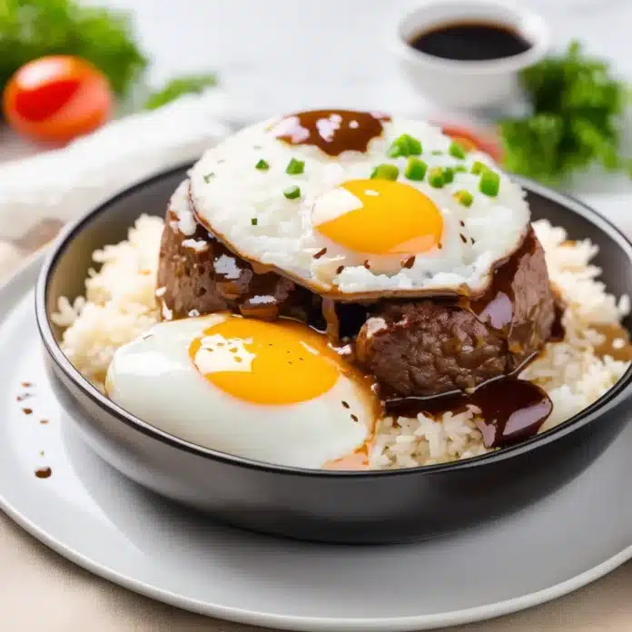 - Assemble the Loco Moco: Divide the cooked rice among four plates. Place a beef patty on top of the rice, then spoon the gravy over the patty. Top each serving with a fried egg.