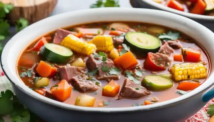 - Add the Vegetables: Add the sliced carrots and potatoes to the pot and simmer for another 20 minutes. Then, add the zucchini and corn, and cook for an additional 10-15 minutes, until all the vegetables are tender.