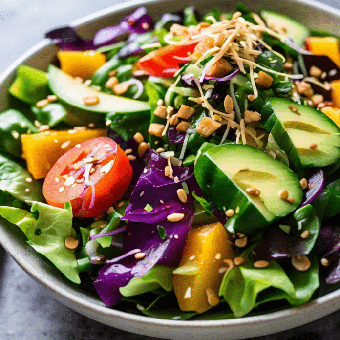 - Top the salad with toasted sesame seeds and crispy wonton strips or crumbled rice noodles for added texture and flavor.