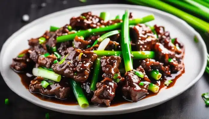 Mongolian Beef and Spring Onions is a delicious and flavorful dish that combines tender slices of beef with the crisp, fresh taste of spring onions, all coated in a savory-sweet sauce. This quick and easy stir-fry is a popular takeout favorite that you can easily recreate at home, offering a perfect balance of flavors with its rich soy sauce, ginger, garlic, and a hint of sweetness from brown sugar. The dish comes together in minutes, making it an ideal choice for a weeknight dinner that feels both indulgent and satisfying. Serve it over steamed rice for a complete and tasty meal.