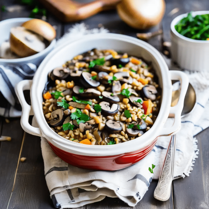 Mushroom Barley Casserole is a hearty and wholesome dish that brings together the earthy flavors of mushrooms with the nutty, chewy texture of barley. This comforting casserole is perfect for those seeking a satisfying vegetarian main course or a robust side dish to accompany roasted meats. The combination of sautéed mushrooms, onions, and garlic, simmered with barley and vegetable broth, creates a dish that’s both rich in flavor and nourishing. Baked until bubbly and golden, Mushroom Barley Casserole is a versatile and delicious option for any dinner table, offering warmth and comfort in every bite.