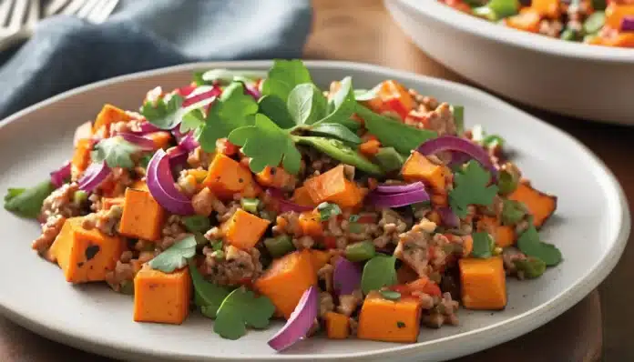 This one-dish Ground Turkey Sweet Potato Skillet is a delightful and nutritious meal that’s perfect for busy weeknights. The combination of lean ground turkey and sweet potatoes offers a hearty and healthy base, while the addition of spices and vegetables brings a burst of flavor and color to the dish. This recipe is not only easy to prepare but also ensures minimal cleanup, making it an ideal choice for a quick yet satisfying dinner. The natural sweetness of the potatoes complements the savory turkey, creating a balanced and delicious meal that’s sure to become a family favorite.