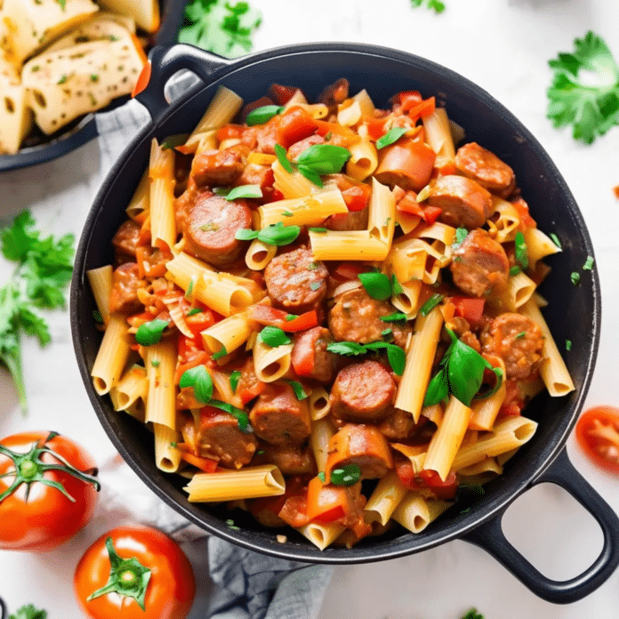 Enjoy this One Pot Sausage Pasta as a comforting, flavorful meal with minimal cleanup!