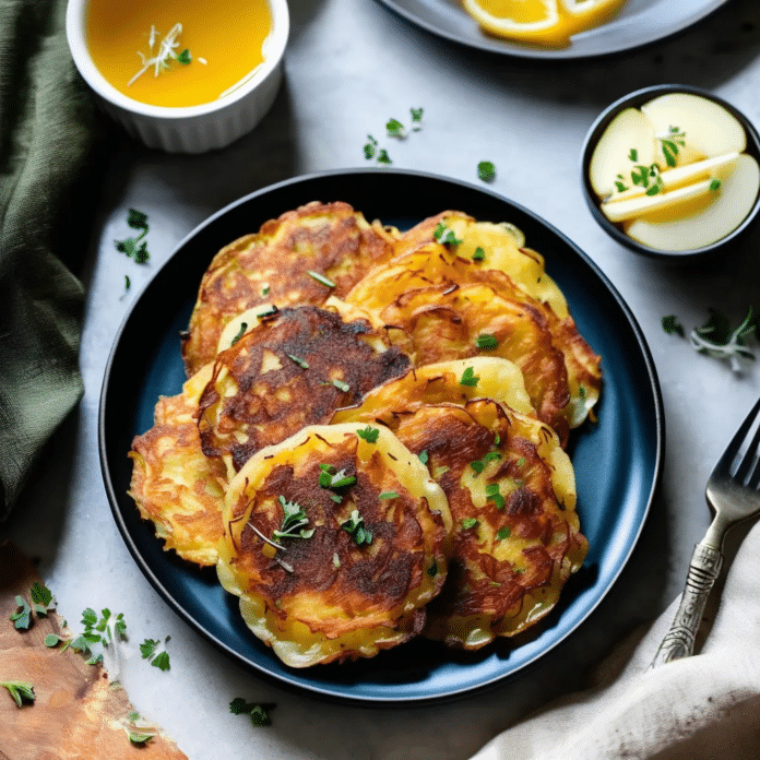 Enjoy these Onion Potato Pancakes as a deliciously crispy and flavorful addition to any meal!