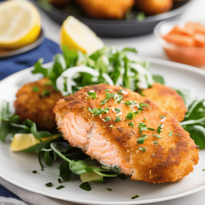 Pan-Fried Salmon Croquettes are a classic dish that brings together the rich flavor of salmon with a satisfying crispy exterior. These croquettes are made with flaked salmon, breadcrumbs, and a blend of herbs and seasonings, then lightly pan-fried to golden perfection. They’re a great option for a quick lunch or dinner, offering a delightful combination of textures and flavors. Serve them with a tangy dipping sauce, a fresh salad, or even on a sandwich for a versatile meal that’s sure to impress.
