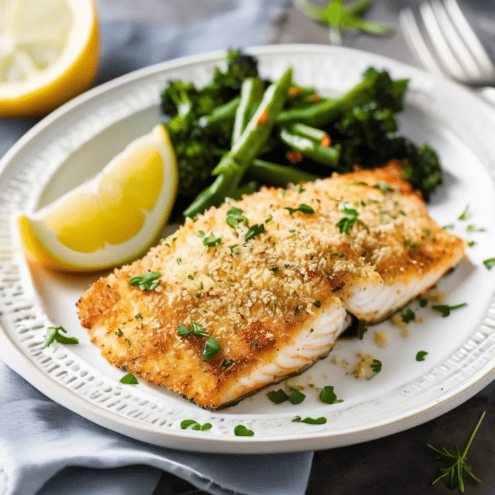 Parmesan-Crusted Baked Fish is a delicious and easy-to-make dish that brings a delightful crunch and rich flavor to your dinner table. This recipe features tender fish fillets coated in a crispy, golden-brown Parmesan and breadcrumb crust, seasoned with herbs and spices. It’s a perfect option for a weeknight meal or a special occasion, offering a healthier alternative to fried fish without sacrificing taste or texture. Serve this mouthwatering dish with a side of fresh vegetables or a simple salad for a complete and satisfying meal that everyone will love.