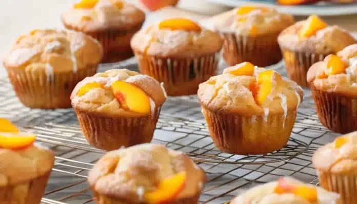 These Peaches ‘n Cream Muffins are a delightful fusion of sweet, juicy peaches and creamy vanilla yogurt, creating a moist and flavorful treat that’s perfect for any time of the day. The tender chunks of fresh peaches bring a burst of natural sweetness, while the creamy filling adds a rich and velvety texture. With a hint of cinnamon and vanilla, these muffins are a warm and comforting addition to your breakfast or snack routine. Enjoy them fresh out of the oven for a deliciously satisfying experience.