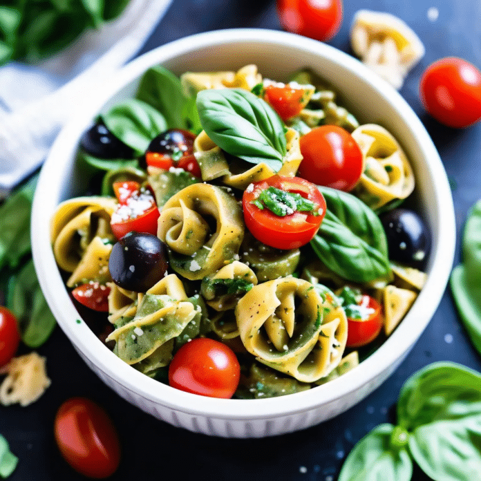 Pesto tortellini pasta salad is a vibrant and flavorful dish that combines tender cheese-filled tortellini with a fresh, herbaceous pesto sauce, creating a perfect harmony of tastes and textures. This salad is loaded with colorful ingredients like cherry tomatoes, baby spinach, and olives, which add a delightful crunch and bursts of flavor. Finished with a sprinkle of Parmesan cheese, this pasta salad is both satisfying and light, making it an ideal choice for picnics, potlucks, or a quick and easy lunch. Whether served as a main dish or a side, pesto tortellini pasta salad is sure to be a crowd-pleaser with its rich flavors and appealing presentation.