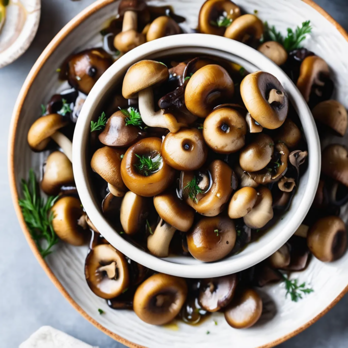 - Let the mushrooms pickle in the refrigerator for at least 24 hours before serving to allow the flavors to develop. Garnish with fresh parsley or dill if desired, and serve cold.