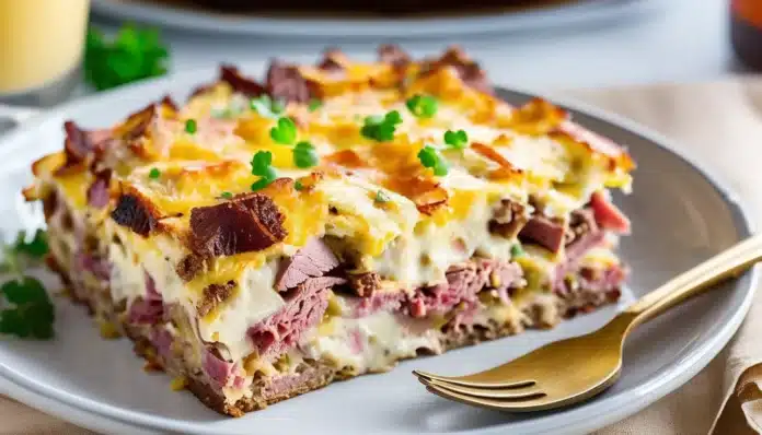 Enjoy this warm, comforting dish that brings all the flavors of a Reuben sandwich to your breakfast table!