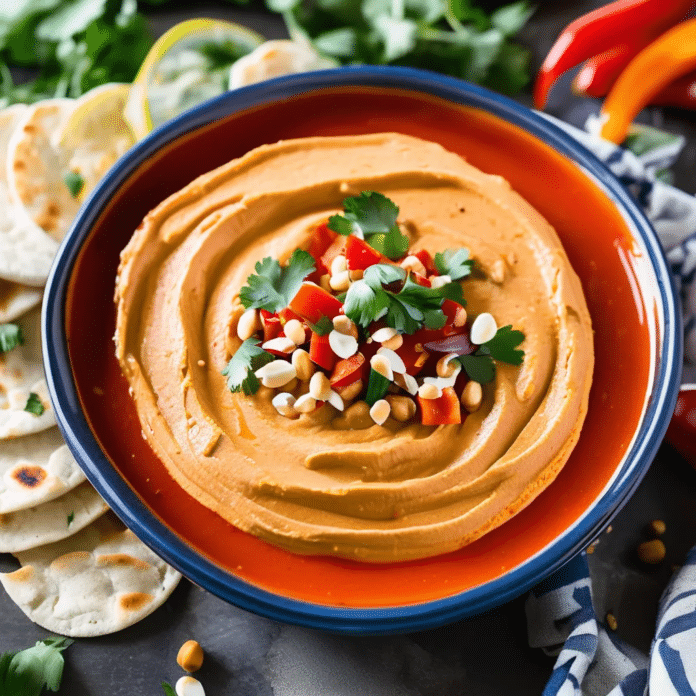 Roasted Red Pepper Hummus is a vibrant, flavorful twist on the classic hummus dip. The sweetness and smokiness of roasted red peppers elevate the creamy chickpea base, while garlic, lemon, and tahini add depth and tanginess. This hummus is perfect as a healthy snack or appetizer, served with pita bread, fresh vegetables, or crackers. Its bright color and rich flavor make it a crowd-pleaser that’s easy to whip up in no time.