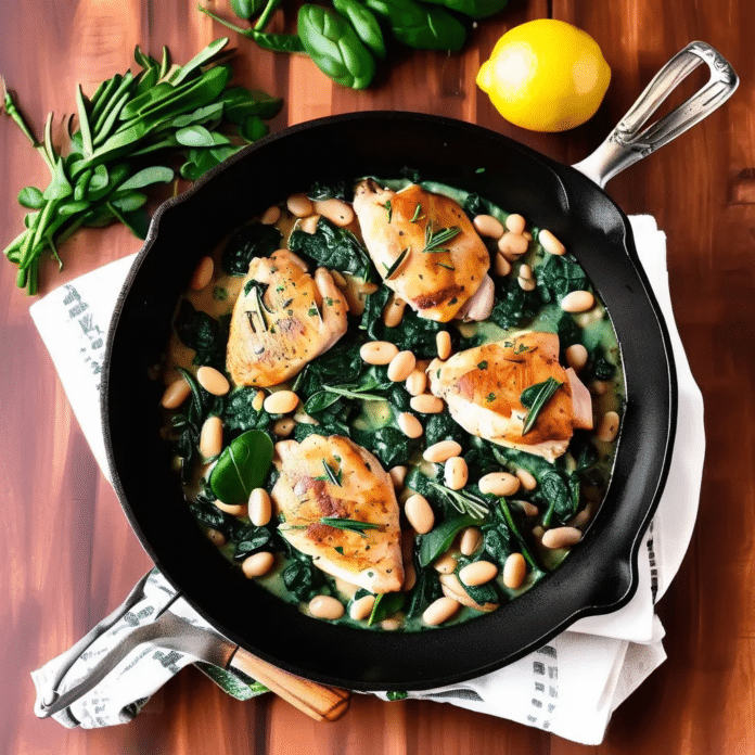 - Combine and Serve: Return the chicken to the skillet, nestling it into the spinach and beans. Garnish with fresh parsley and serve with lemon wedges on the side.