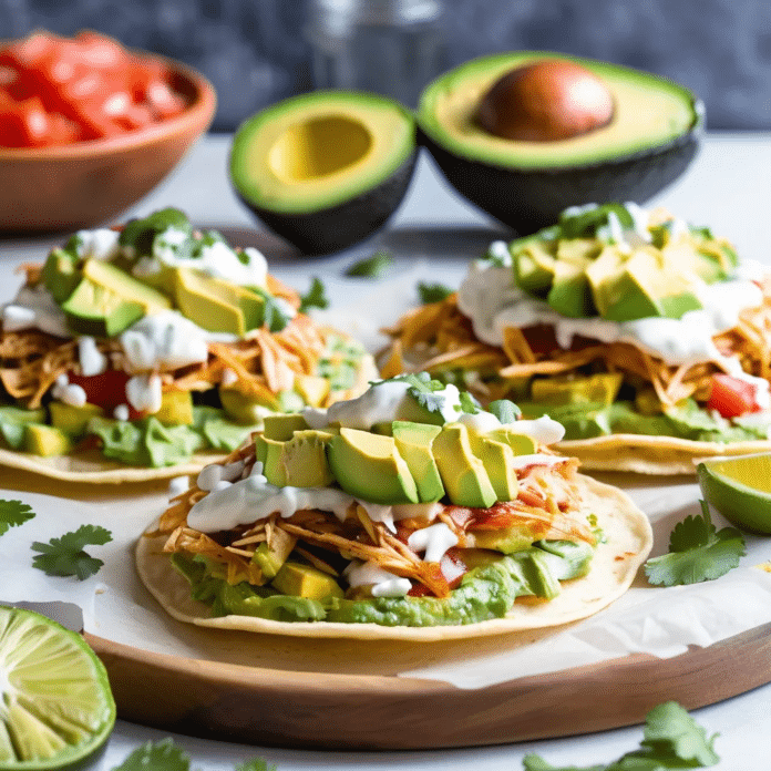 Rotisserie Chicken and Avocado Tostadas are a quick, flavorful meal that combines the convenience of rotisserie chicken with fresh, creamy avocado on crispy tostada shells. The shredded chicken is seasoned with spices and lime juice, providing a zesty base, while the mashed avocado adds richness. Piled high with toppings like shredded lettuce, salsa, and cheese, these tostadas are both satisfying and versatile. Perfect for a fast lunch or dinner, they bring together textures and flavors that are sure to please everyone at the table.