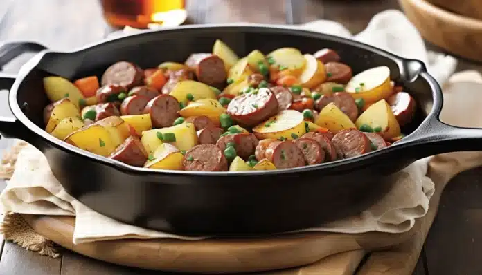 - Combine everything: Return the cooked sausage to the skillet, stirring to combine with the potatoes and vegetables. Cook for another 2-3 minutes to heat everything through.