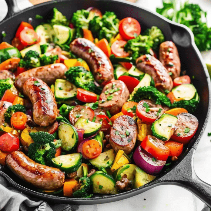 Enjoy this flavorful and easy Sausage and Veggies Skillet as a delicious and nutritious option that makes dinner time a breeze.