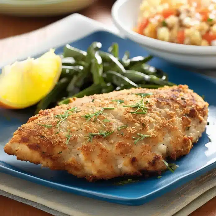 Enjoy your Savory Onion-Crusted Chicken with your favorite side dishes for a meal that’s sure to become a family favorite!