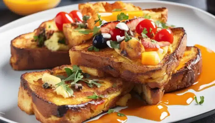 - Serve: Serve the savory French toast hot, garnished with extra herbs or cheese if desired. It pairs perfectly with sautéed spinach, tomatoes, or a side salad.