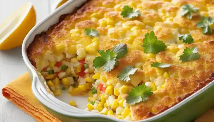 Enjoy your Scalloped Corn Bake, a creamy and crunchy dish that adds warmth and flavor to any meal, making it a perfect addition to your table!