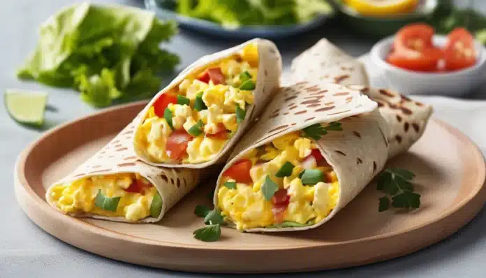 - Wrap and serve: Fold the sides of the tortilla over the filling, then roll it up tightly from the bottom to create a wrap. Serve the Scrambled Egg Wraps immediately, with salsa or hot sauce on the side if desired.