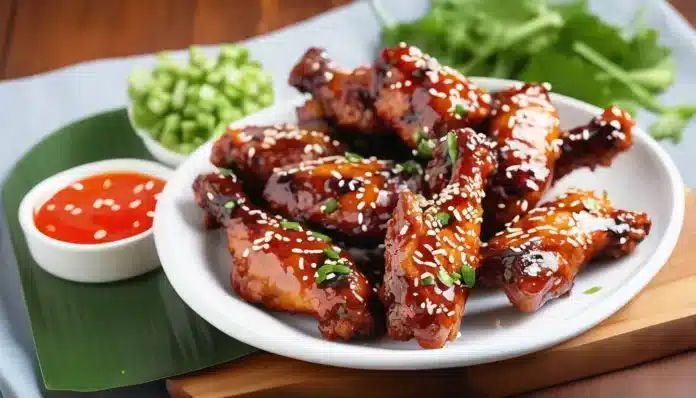 - Serve: Transfer the wings to a serving platter. Sprinkle with toasted sesame seeds and chopped green onions. Serve hot and enjoy!