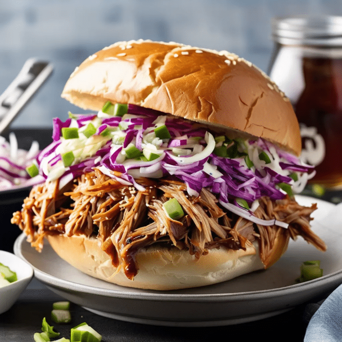 Sesame Pulled Pork Sandwiches bring an exciting fusion of flavors to the classic pulled pork sandwich. The pork is slow-cooked to tender perfection with a blend of savory soy sauce, sesame oil, garlic, and ginger, giving it a deliciously rich and slightly nutty flavor. Topped with a crunchy sesame slaw and piled high on soft buns, these sandwiches are perfect for a casual weeknight dinner or a crowd-pleasing weekend BBQ. The balance of tender pork and fresh, tangy slaw makes every bite a delightful experience!