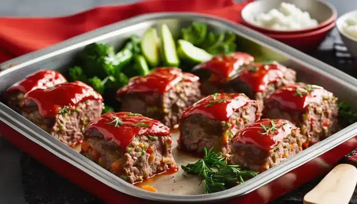 Sheet-Pan Mini Meat Loaf is a delightful twist on the classic comfort food, perfect for busy weeknights or a cozy family dinner. By baking individual meat loaves on a sheet pan, you ensure that each portion is perfectly cooked with a deliciously caramelized exterior. This method also allows for easy pairing with roasted vegetables, making it a complete meal with minimal cleanup. The mini meat loaves are packed with flavor, thanks to a blend of herbs and spices, and a tangy glaze that adds the perfect finishing touch. This recipe will become a family favorite with its simple preparation and satisfying taste.