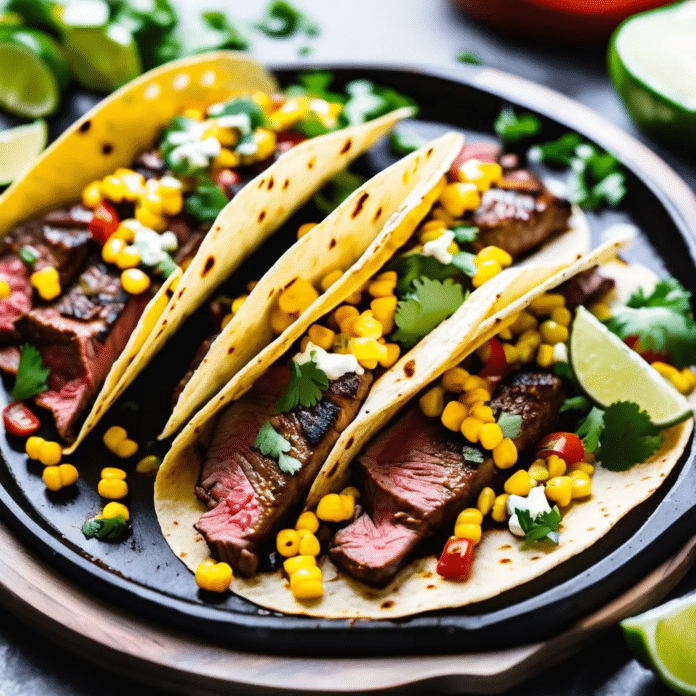 - Assemble the tacos: Layer slices of steak and a spoonful of chipotle corn onto each tortilla. Top with fresh cilantro, avocado slices, and a squeeze of lime. Add any additional toppings like sour cream or queso fresco if desired.