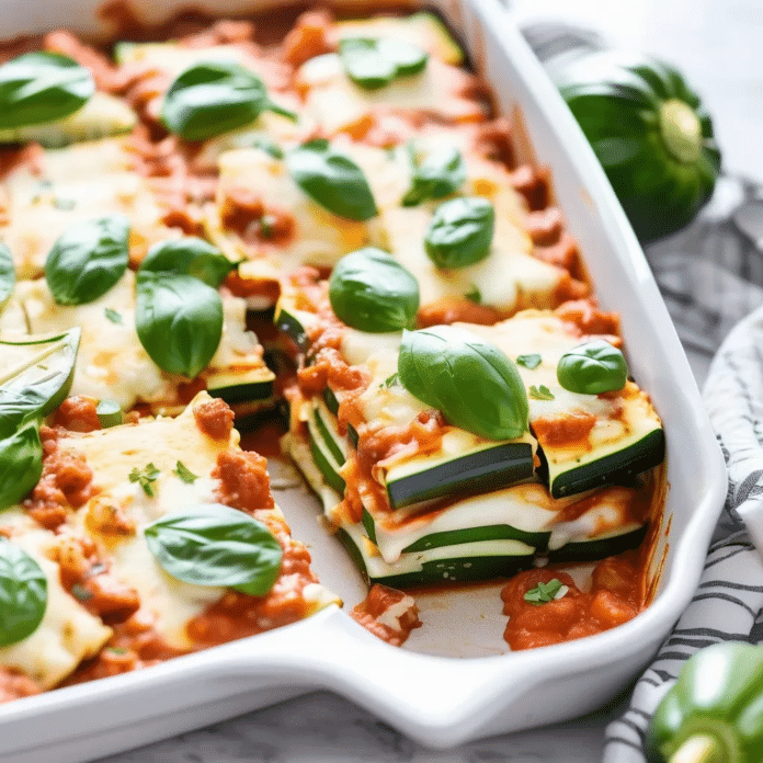 Sheet Pan Zucchini Lasagna with Garlic Butter Croutons is a fresh, low-carb twist on the classic lasagna, perfect for weeknight dinners or a lighter version of comfort food. Layers of thinly sliced zucchini stand in for pasta, paired with a flavorful blend of marinara sauce, ricotta, and melted mozzarella. What makes this dish truly special is the addition of crunchy garlic butter croutons scattered on top, adding texture and a garlicky bite to every mouthful. The sheet pan method allows for even cooking and an easy clean-up, making this dish as convenient as it is delicious!