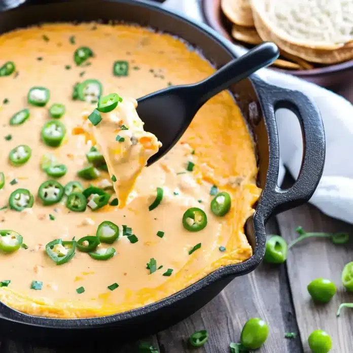 Skillet Beer Cheese Dip is a creamy, savory, and flavorful appetizer that’s perfect for game day or any gathering. This delicious dip combines the rich flavors of cheddar and cream cheese with the subtle bitterness of beer, creating a smooth and melty texture that’s irresistible. The addition of garlic and spices enhances the taste, while a topping of crispy bacon and fresh green onions adds a delightful crunch and freshness. Serve it warm straight from the skillet with pretzels, bread, or veggies for dipping, and watch it disappear in no time!