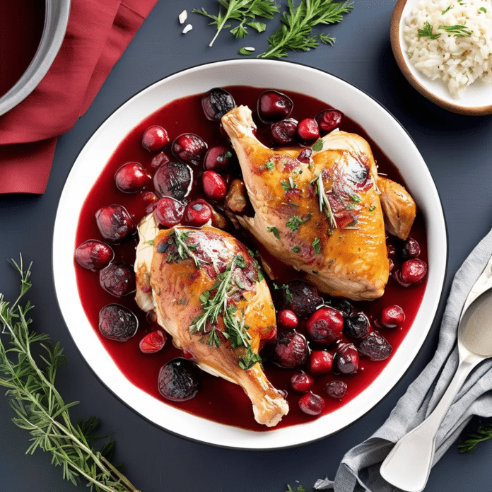 Slow-Cooked Cranberry Chicken is a flavorful and easy-to-prepare dish that combines the tangy sweetness of cranberries with savory chicken for a deliciously unique meal. This recipe involves simmering chicken breasts or thighs in a tangy cranberry sauce, infused with a hint of garlic and herbs. The slow cooking process allows the flavors to meld together beautifully, resulting in tender chicken that soaks up the rich, slightly sweet sauce. Ideal for busy weeknights or a simple, comforting dinner, this dish pairs wonderfully with rice, mashed potatoes, or a fresh green salad.